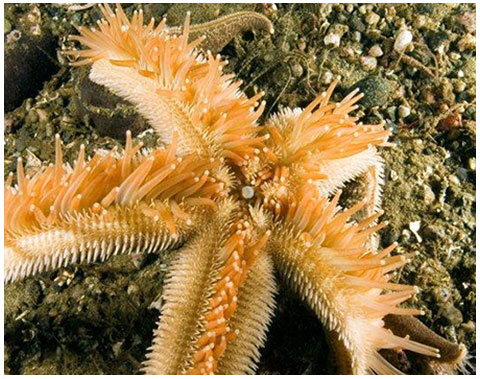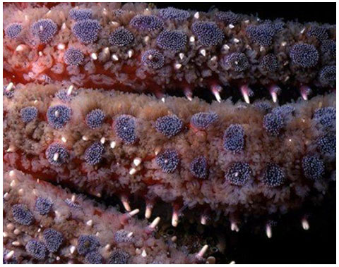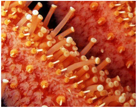 The tube-feet of a SUNFLOWER STAR. Note the suckers at the ends of the tube-feet, which are capable of great extension.