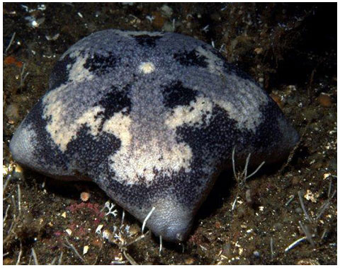 Notes: Eats sponges and a variety of other invertebrates. When disturbed this star can produce huge amounts of clear mucous—hence the name. The slime will kill other animals immersed in it for 24 hours. The slime also repels attacks by the MORNING SUN STAR and the SUNFLOWER STAR.