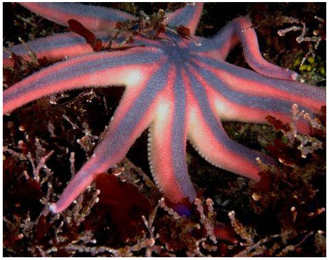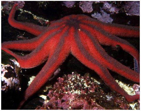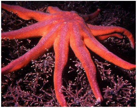 A typical STRIPED SUN STAR. It is one of the most attractive PNW sea stars.