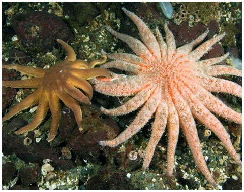 SUNFLOWER STARS are proficient diggers, often excavating deep pits to capture clams.